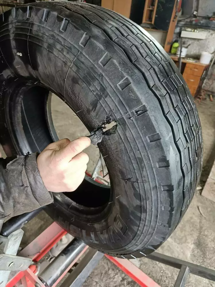 Ремонт боковых порезов шин 12.00R20
